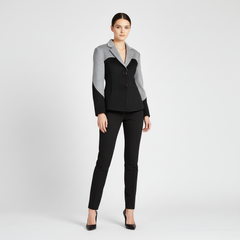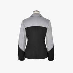 Veste bicolore élégante, conçue pour un look moderne et sophistiqué. Ce modèle dispose d'un design unique et ses matériaux de qualité en font un choix parfait pour une allure raffinée et contemporaine, que ce soit pour le travail ou une sortie en soirée.