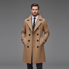 • Design classique à double boutonnage : Une coupe ajustée qui met en valeur la silhouette avec un col large et structuré.