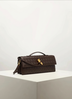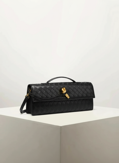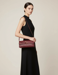 Le sac se distingue par son fermoir tige doré avec boucle nouée, pensé pour allier sécurité et élégance. Ce détail raffiné met en valeur le tressage du cuir et assure une fermeture fiable tout en ajoutant une touche luxueuse et unique au design.