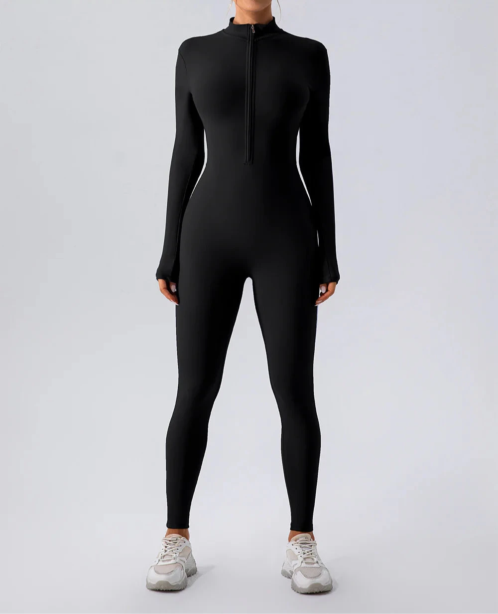 Cette combinaison ajustée en noir classique offre un look moderne et épuré. Dotée d’une fermeture éclair frontale et de manches longues, elle est parfaite pour un style sportif ou décontracté. Ce modèle met en valeur la silhouette tout en assurant confort et liberté de mouvement. Une pièce polyvalente pour vos séances d’entraînement ou sorties décontractées.
