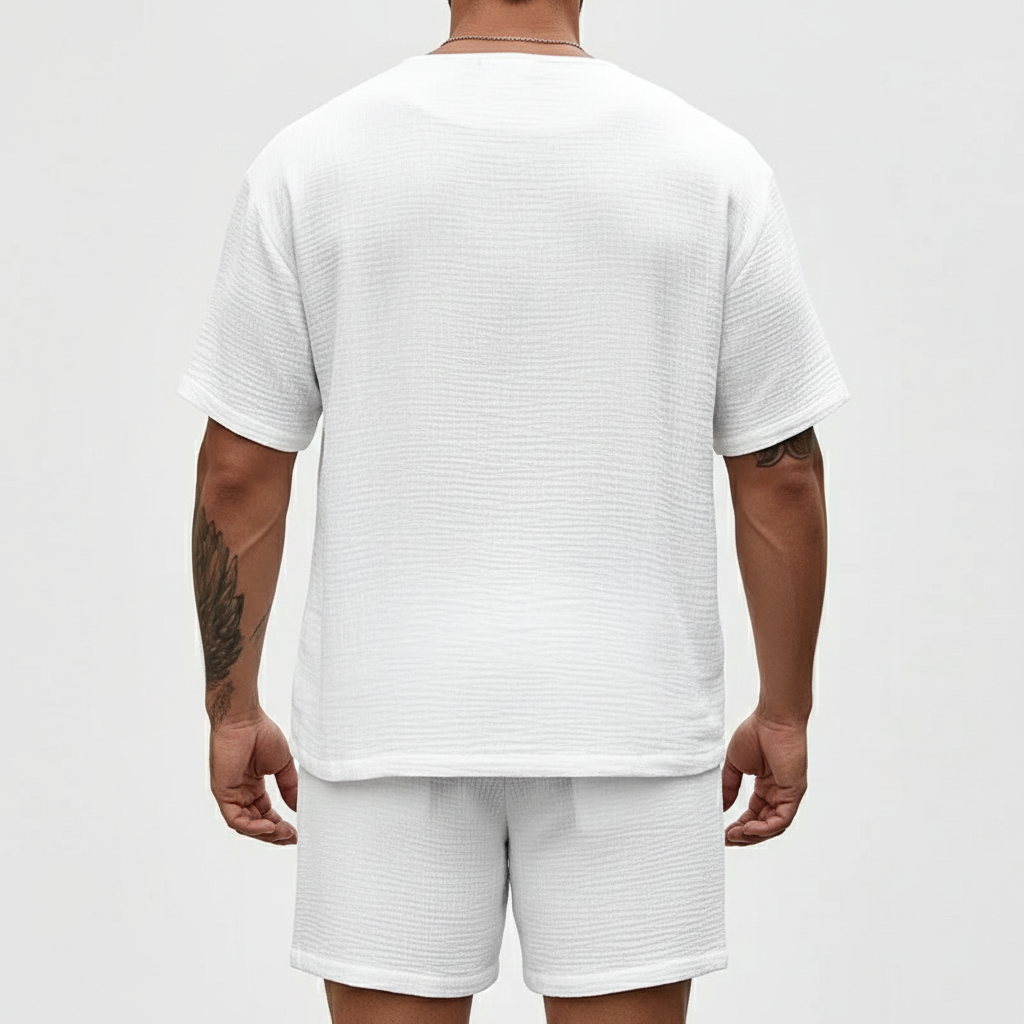 Pensé pour allier confort ultime et style minimaliste, ce duo deux pièces comprend un t-shirt à manches courtes chic et un short assorti — parfait pour vos moments de détente ou vos sorties décontractées.