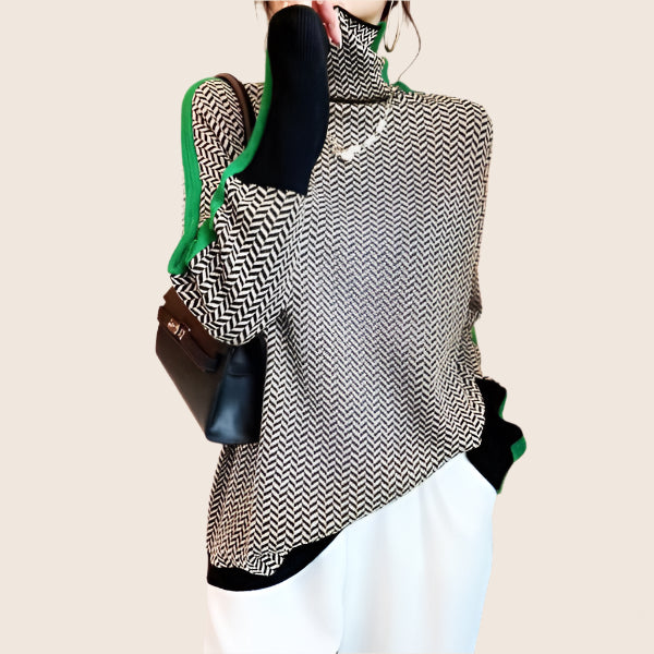 Pull élégant au motif chevron, agrémenté de touches colorées pour un style sophistiqué et contemporain. Ce modèle a été conçu pour offrir chaleur et confort lors des journées fraîches.