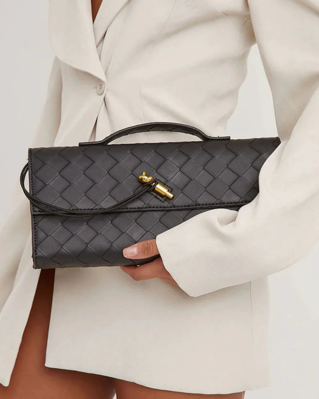 Pensé pour les femmes qui aiment allier élégance et praticité, le Sac à Main Ava séduit par son tressage artisanal raffiné et sa silhouette intemporelle. Son fermoir doré signature apporte une touche de modernité et de sophistication, tandis que ses finitions soignées en font une pièce essentielle du quotidien. Grâce à sa bandoulière amovible et ajustable, il se porte à la main ou à l’épaule. Léger mais structuré, il offre un espace généreux pour accueillir vos essentiels, du matin jusqu’au soir.